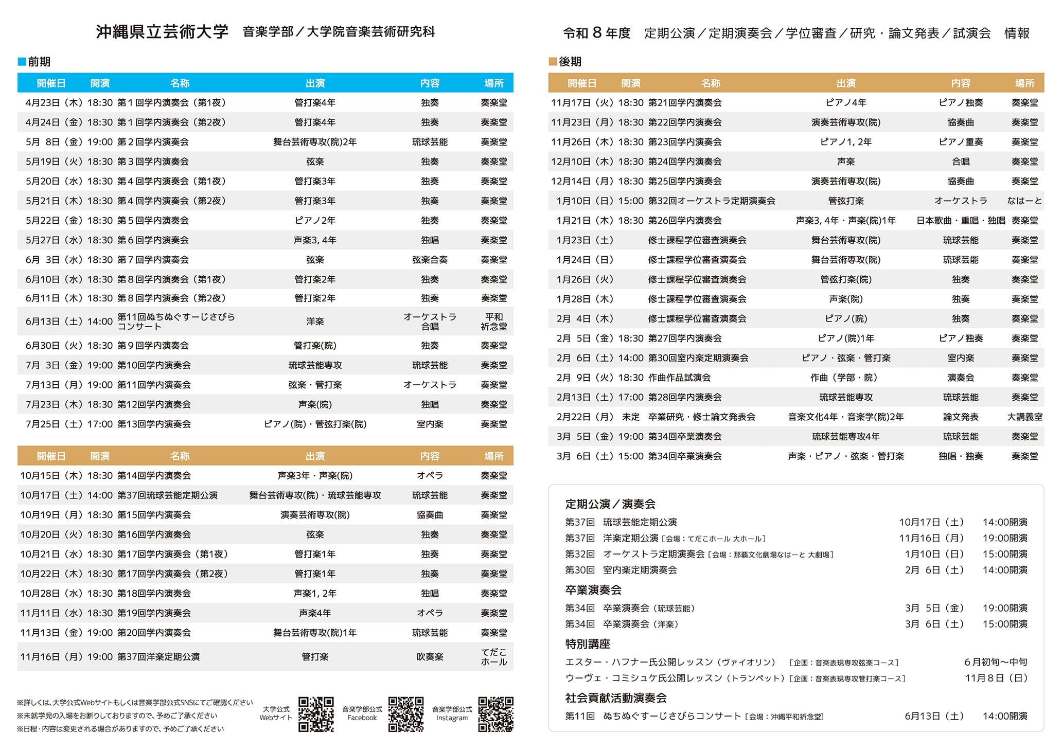 令和8(2026)年度 演奏会一覧