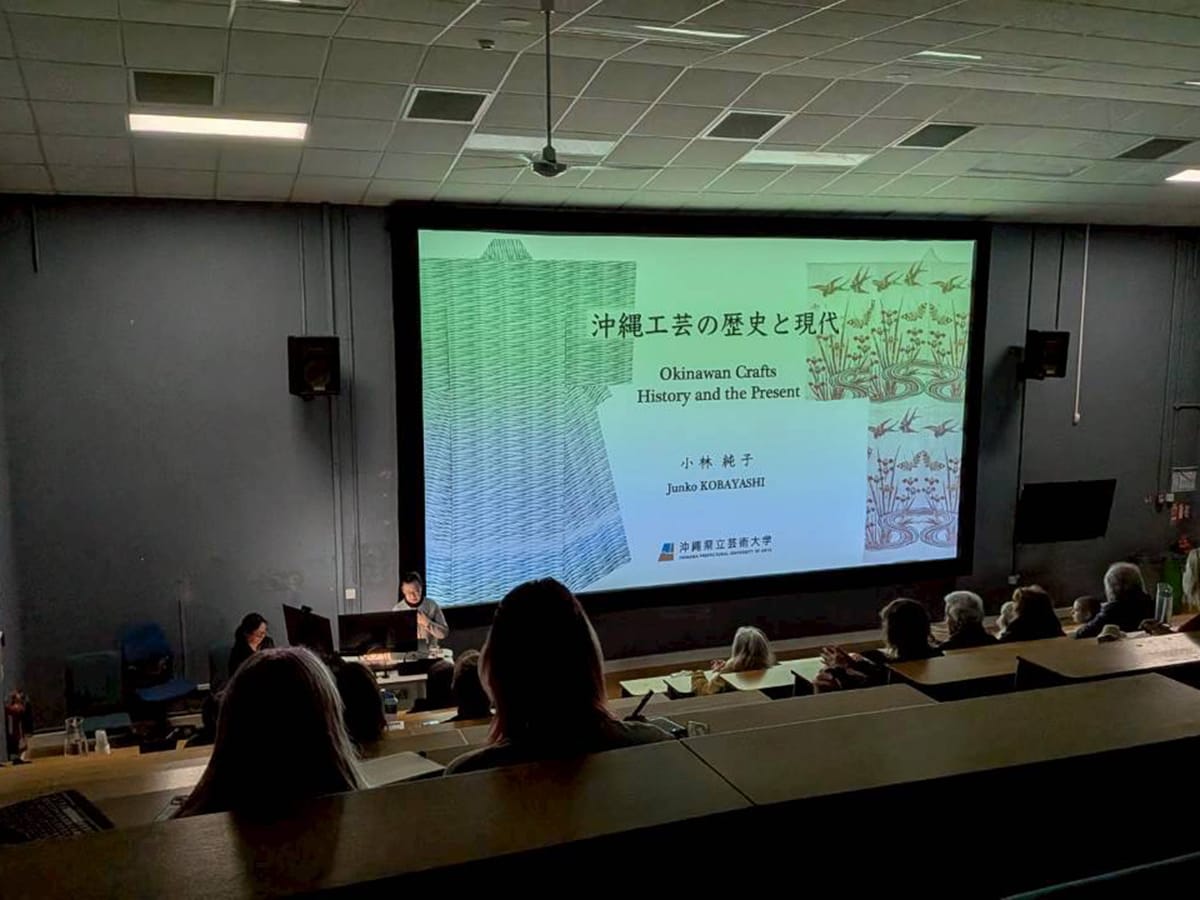 本学・工芸専攻教員の展覧会が、イギリスのノリッジで2025年10月29日(水)〜11月1日(土)の日程で開催されました。 本展覧会はイギリス国内で初めてのまとまった現代沖縄工芸展となり、4分野(染・織・陶芸・漆芸)の伝統的な技法を踏まえたモダンな工芸作品が展示されました。 会期中には染・織・陶芸のワークショップや芸術学専攻の小林純子先生による講演会も行われ、盛況の内に幕を閉じました。